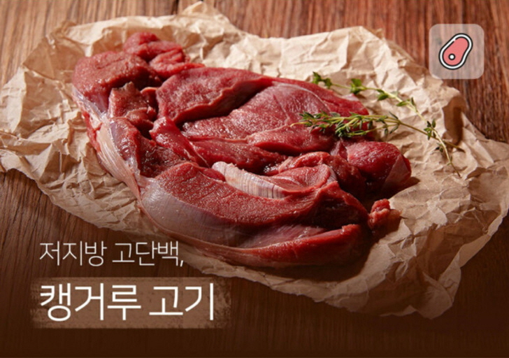 캥거루 고기 - 알레르기 유발이 적고 다른 육류에 비해 공액리놀래산(CLA) 지방산이 5배 정도 많아 항암작용 및 항당뇨, 고혈압에 효과.