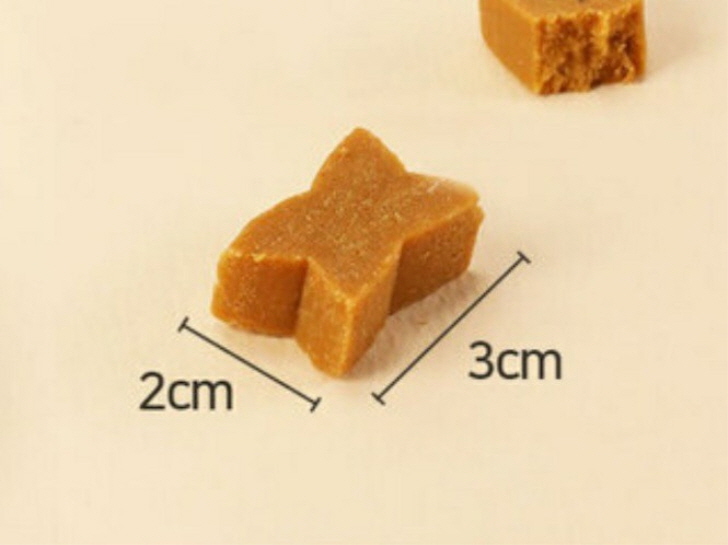 사이즈는 세로 2cm, 가로 3cm, 높이 1.5cm의 사이즈로 작은 편이라 소형견이 먹기에 적합해 보입니다.