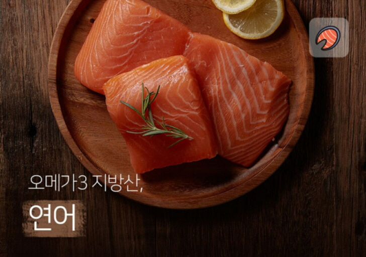 연어 고기 - 알레르기 유발이 적고 강력한 항산화 작용을 하는 아스타잔틴 성분과 피부 개선 및 면역력에 좋은 오메가 3 지방산이 풍부.