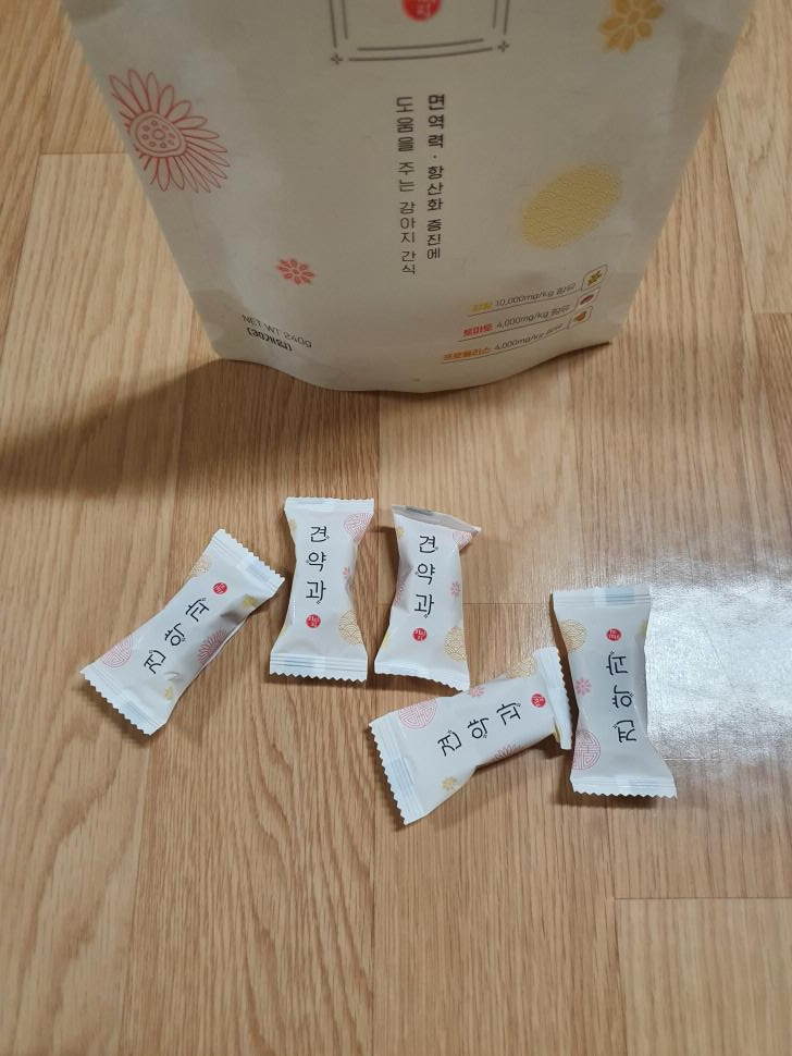 친구 집에 치열이 조금 안 좋아서 딱딱한걸 못 먹는 11세 젊은 할머니가 있는데 견약과를 줘보니 먹고 싶어는 하는데 씹기가 힘든지 못 먹고 버리네요.