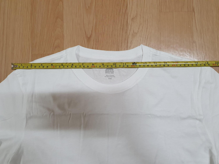 베이직하우스 면티 제품은 레이어드용으로 구매한 거라서 단품으로 입는 제품보다 총기장이 더 길어야 하기 때문에 제일 큰 사이즈인 110 사이즈를 구매했습니다.