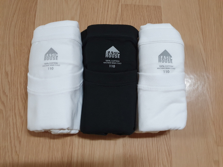 원하시는 컬러로 구매할 수 있게 화이트 3장, 블랙 3장, 화이트 2장 블랙 1장, 화이트 2장 그레이 1장 이렇게 패키지로 구성되어있습니다. 저는 화이트 2장 블랙 1장 구성으로 구매했습니다.