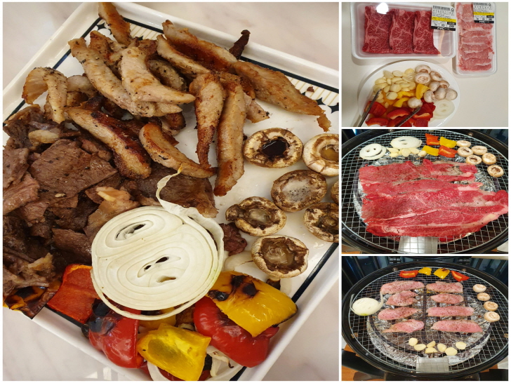 아무래도 전기그릴이라 고기가 잘 안 익는단 얘기가 있어서 두꺼운 고기를 피하고 얇은고기로 준비했는데 생각보다는 잘 익어서 만족했습니다.