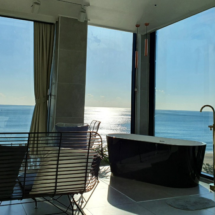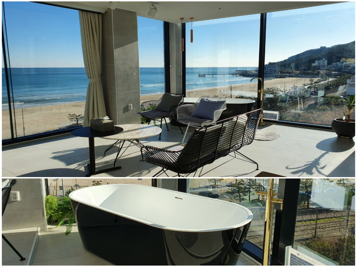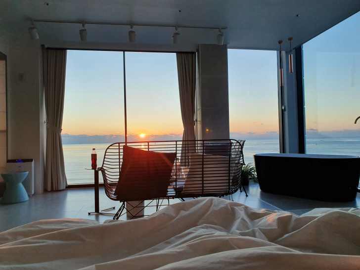 자기 전에 욕조에 누워서 바다를 볼 생각이었는데 생각보다 썬팅이 약해서 밖에서 안이 다 보이기 때문에 커튼을 쳐야 해서 그 부분이 조금 아쉬웠습니다.