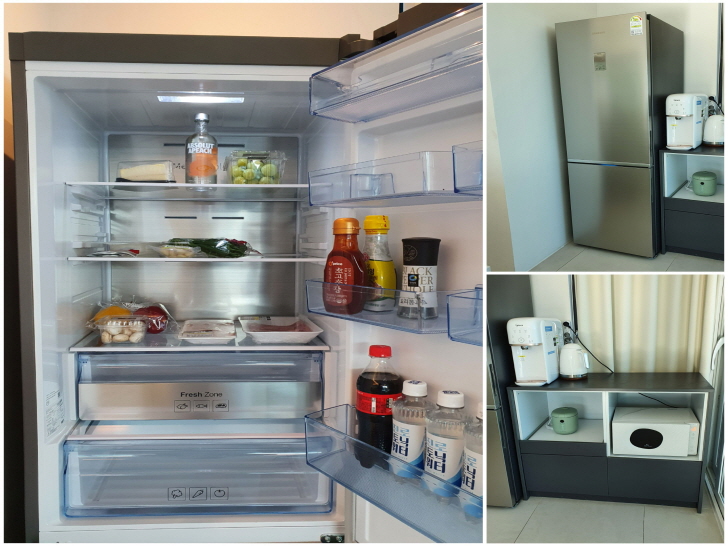 정수기, 미니 밥솥, 전자레인지, 커피포트까지 다 있었지만 저희는 딱히 사용할 일이 정수기 말고는 없었네요.