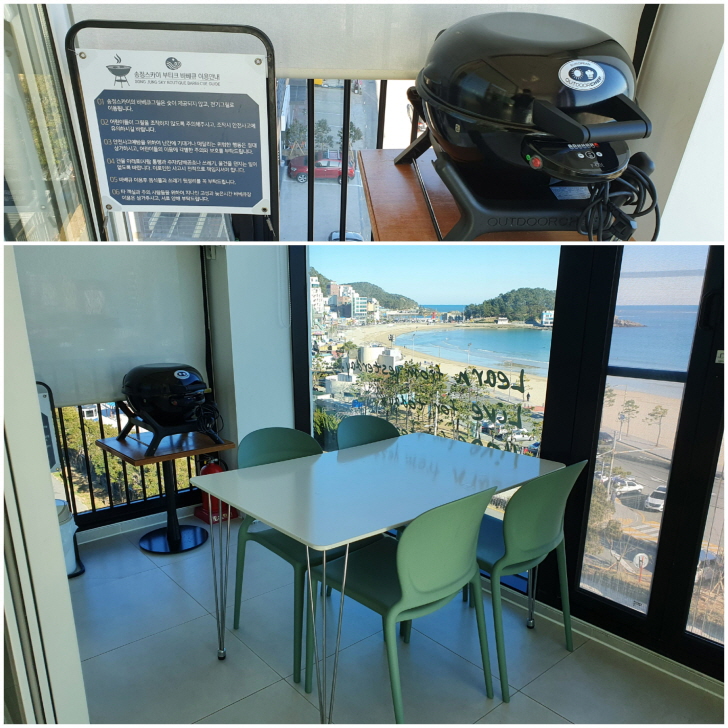 테라스에서 바베큐 이용 시 가스그릴과 전기그릴을 사용할 수 있는데 가스그릴은 3만원 전기그릴은 2만원의 추가금이 있고 그릴은 둘 중 하나를 선택할 수 있는 게 아니며 객실마다 배치되어있는 그릴이 다릅니다.